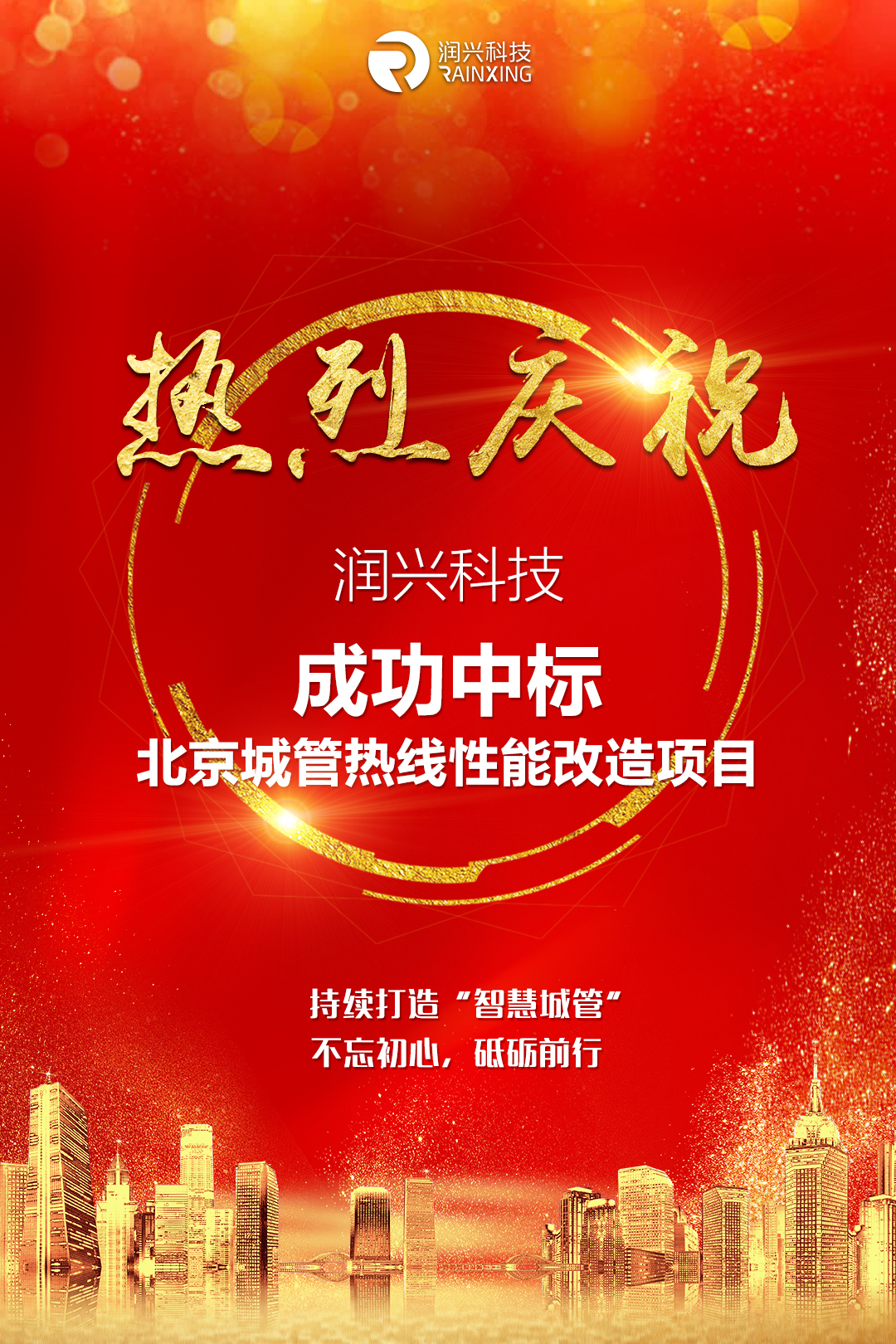 喜報(bào):潤興科(kē)技(jì)成功中标-北(běi)京城(chéng)管♦₽≤熱(rè)線性能(néng)改造項目